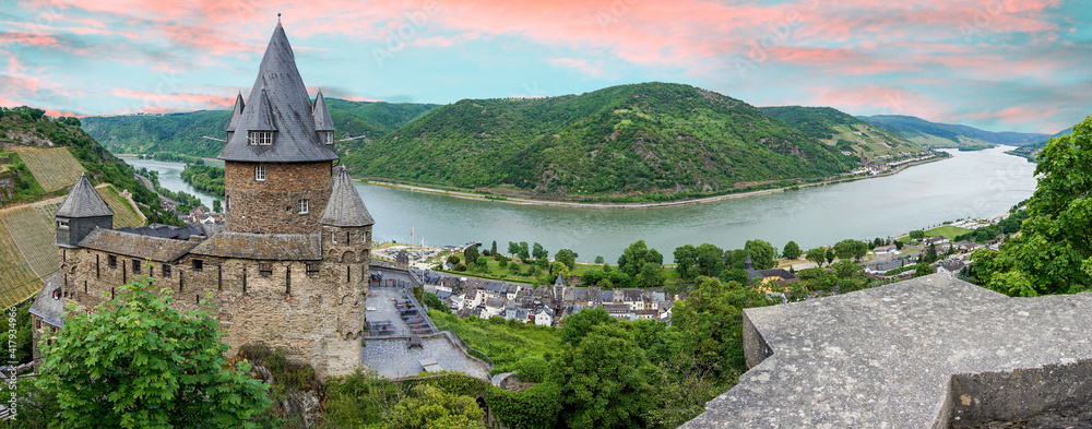 aerial view of Bacharach Town in Germany, Rhine River Valley.