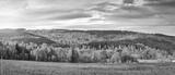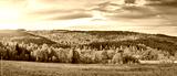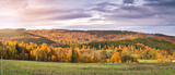 Colorful and bright autumn forest, mountains panorama.