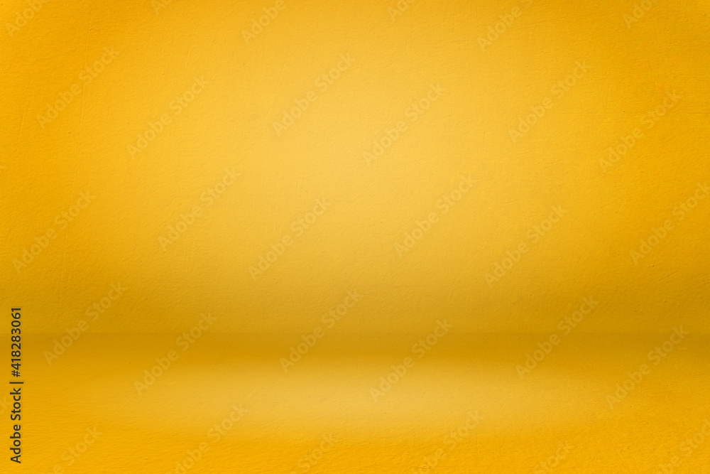 abstract gold gradient spotlight room texture background. Yellow background with little grunge. Studio backdrop wallpaper light room wall golden and empty space.
