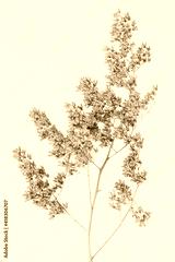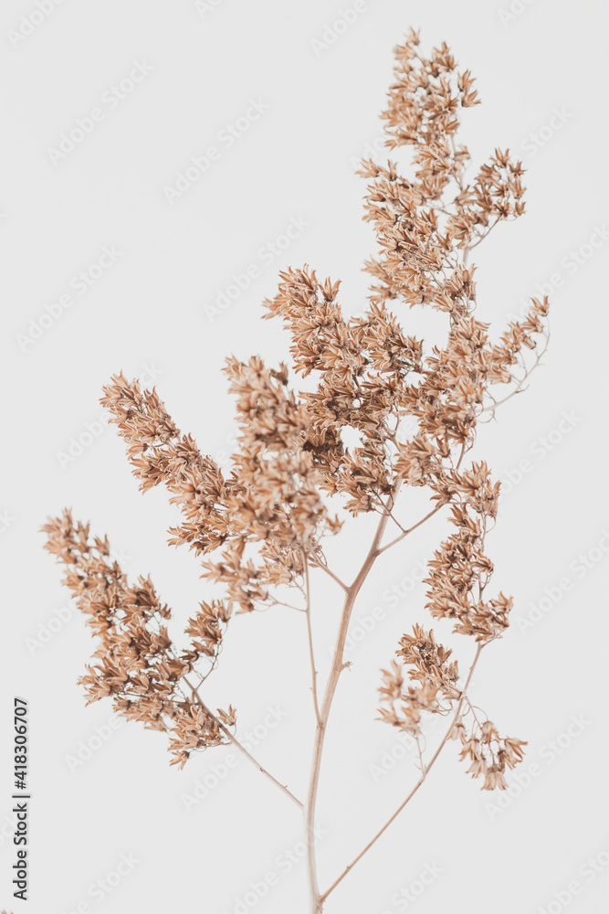 Beige brown vintage tones romantic dry flowers with bell shape buds on light background vertical macro