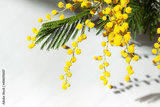 Fresh yellow mimosa branch on the bright white background. Close up