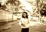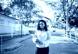 Portrait of a young college girl holding folders and notebooks and walking down the street to go to school or college. Student girl smiling and happy.