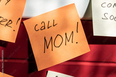 call my mother, a reminder on a sticker, a handwritten inscription with a marker