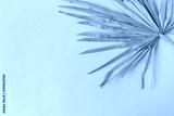 Closeup of dry tropical palm leaf. Peachy pale background. Minimal floral texture composition.