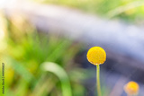 Macro closeup of one yellow flower head with fallen petals in Colorado garden with blurry background showing texture