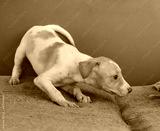 A closeup of a cute puppy of Parson Russell terrier