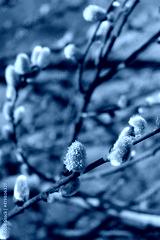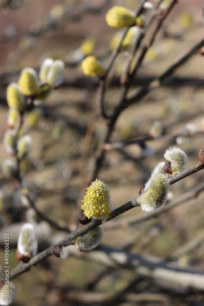 Close-up of Goat Willow or Salix caprea tree with yellow flowers on early springtime