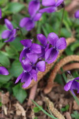 Bunch of purple Common or english Violets in the garden. Viola odorata plants on springtime