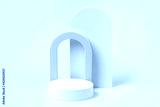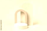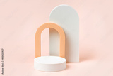Abstract background with geometric forms and podiums in pastel color for product presentation. Podium and arch to show cosmetic products.