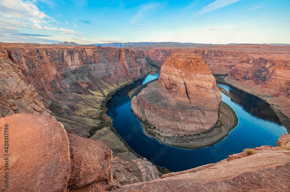 Arizona meander Horseshoe Bend of the Colorado River in Glen Canyon, beautiful landscape, picture for a postcard, big board, travel agency