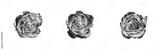 Silver rose flowers set light white background isolated close up top view, beautiful black and white roses flower collection, shiny gray metal rosa, floral design element, natural pattern, decoration