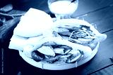 Pita stuffed with chicken, tomato, cucumber and spinach on wooden background. Middle Eastern cuisine.