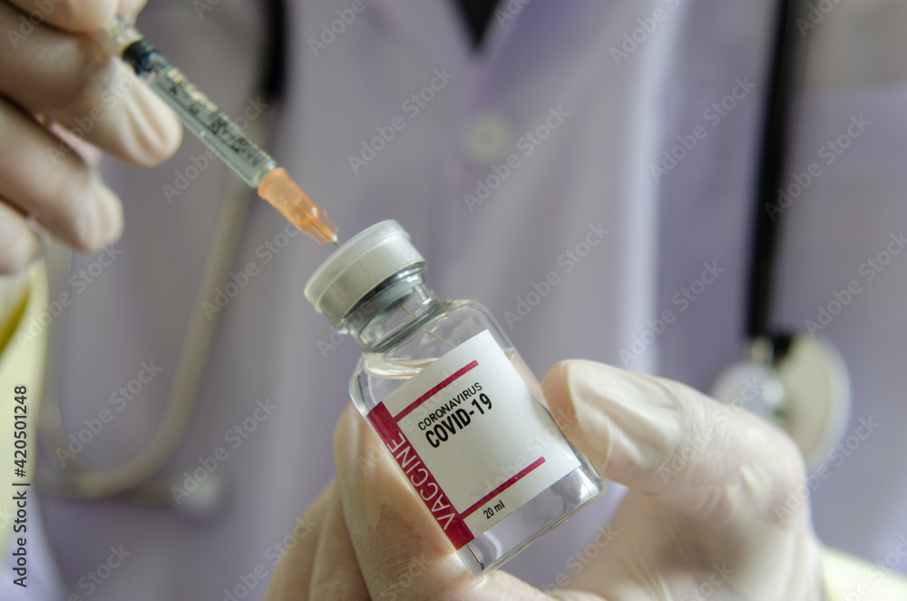 Doctor or laborant holding COVID-19 vaccine tube Or coronavirus vaccine
