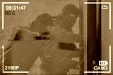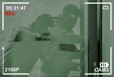 Überwachungskamera nimmt Einbrecher an einer Tür auf