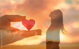 Young woman looking up to the sky having love set her free. Salvation and compassion concept.