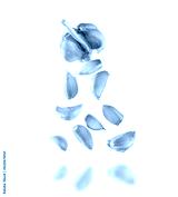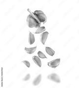 falling garlic onion and garlic cloves isolated on a white background