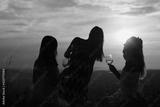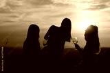 Silhouette of group of women enjoy picnic time in weekend at amazing sunset.