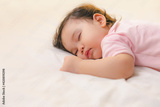 Adorable cute toddler or baby girl sleeping on bed at night with sweet dream in bedroom Lovely child get deep sleep and get relax and happy during lying down on bed Little infant girl get good sleep