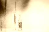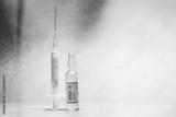 Coronavirus vaccine. COVID-19. Ampoules with ncov-2019 vaccine in a light background. Mass vaccination against a worldwide epidemic.