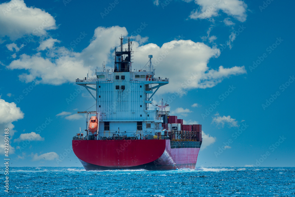 Cargo shipping transportation logistic commerce industry loading export on sea with blue cloud sky background.