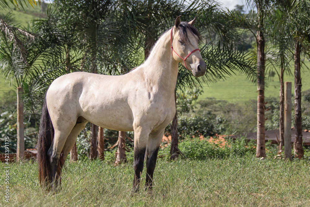 Buckskin horse. Mangalarga Marchador horse with loose palomine coat on the training track.