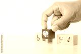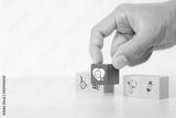 Hand choose heart and heart wave signals icon on cube wooden toy blocks stacked with other medical symbols concepts of illness treatment and health safety insurance.