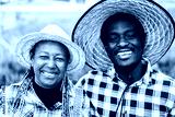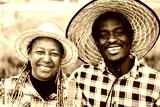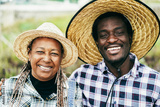African farmers smilig on camera during harvest period - Farm lifestyle concept - Main focus on faces