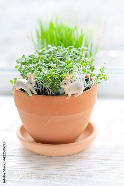 Cute rabbits and eggs with flowers on white background. festive spring season. Ostara sabath, wicca pagan tradition. spring equinox
