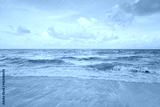 Sea ocean beach sunset sunrise landscape outdoor. Water wave with white foam. Beautiful sunset airy red sky with clouds. Natural aquatic blue pink turquoise aquamarine colorful background.