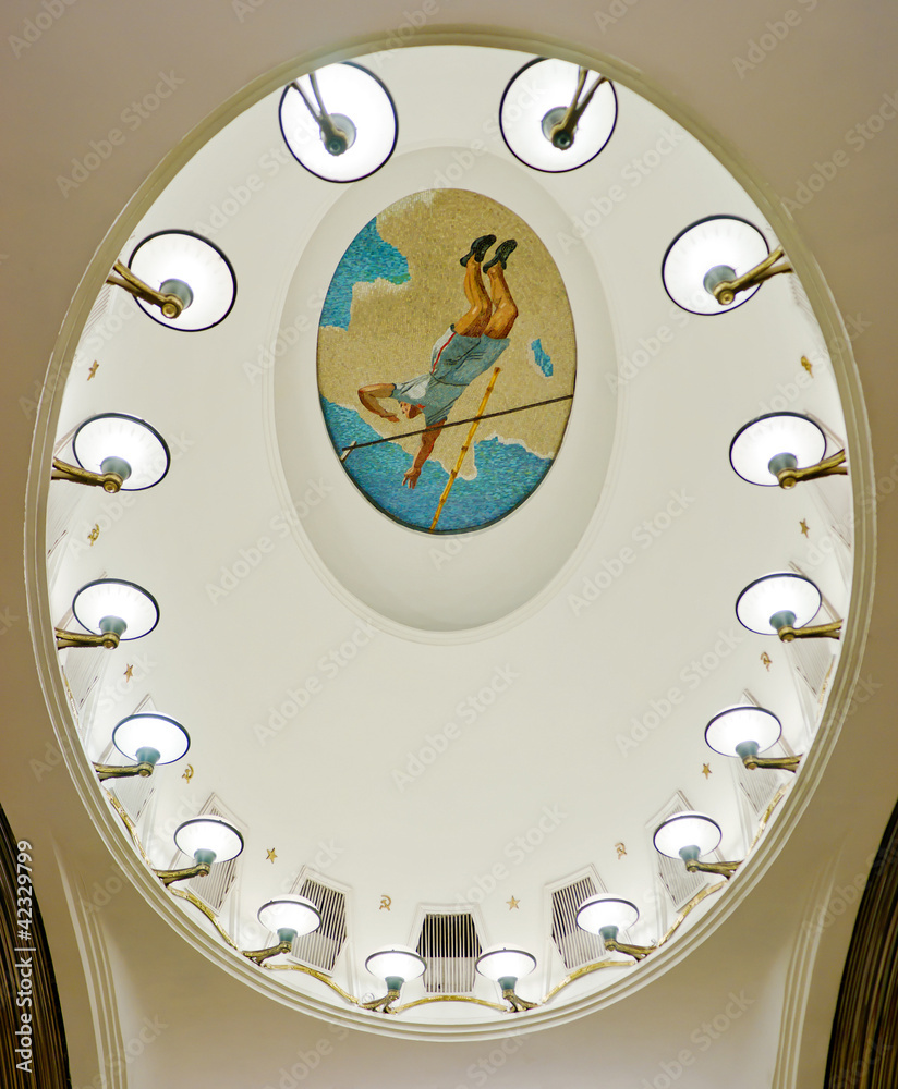 Interior of metro station Mayakovskaya in Moscow. Soviet design.