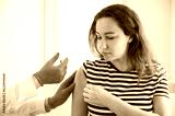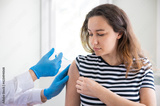 Doctor applying a vaccine on a woman's arm .