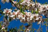 Strolling through fields of flowering almond trees