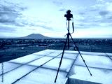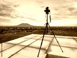 Camera and Tripod on Rooftop Deck with a View of Mt. Arayat (Inactive Volcano) in the Evening - Pampanga, Luzon, Philippines