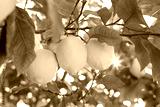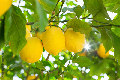 Fresh organic lemons on tree in the orchard, harvesting, picking