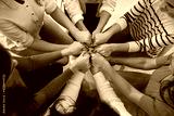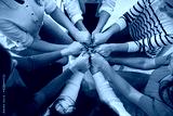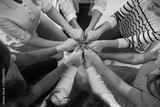 Top view close up of women's hands holding each other in group therapy or in a session with a motivational trainer. Concept of women's community, psychological help, trust and support.
