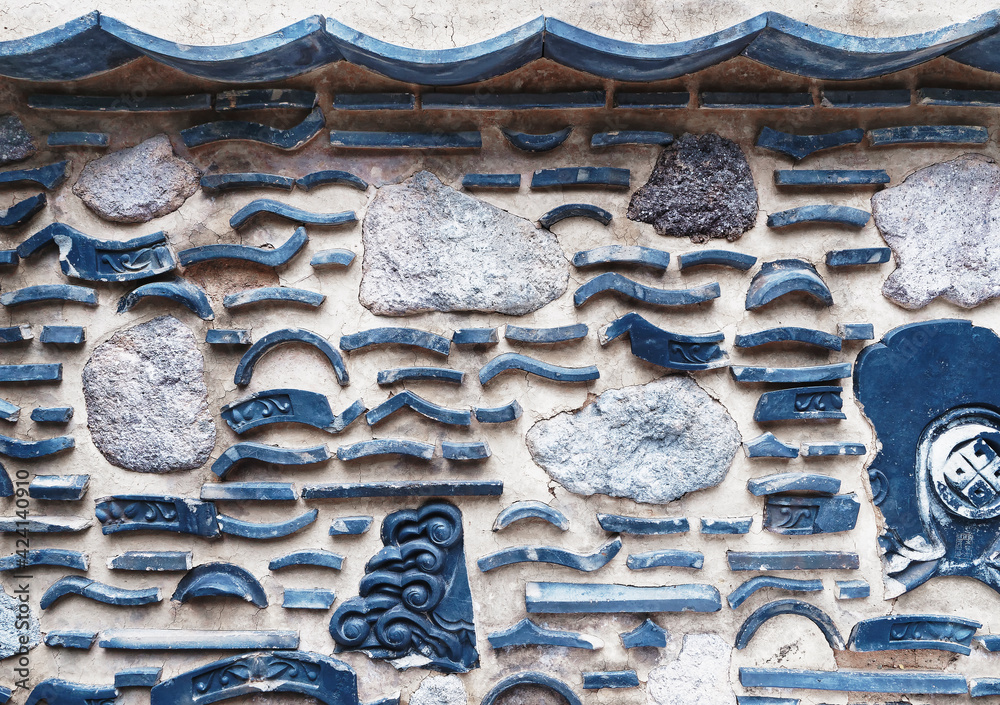 Wall tiles Art traditional Korea Architecture detail