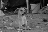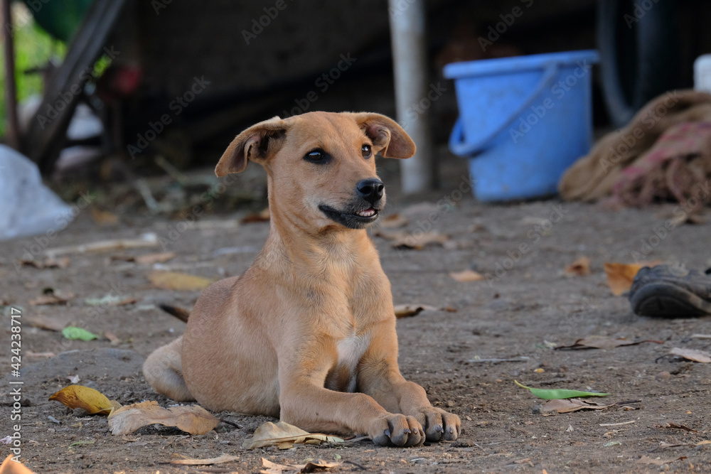 A brown small bitch looking at