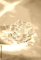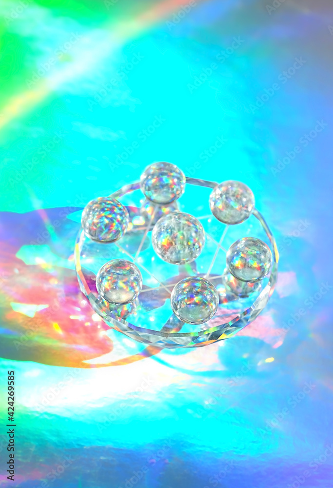 quartz crystal balls on abstract holographic background close up. Crystal prism Refracting vivid rainbow colors light. spiritual healing crystal practice. Feng Shui, Good energy flow