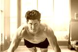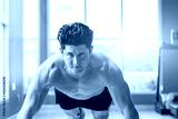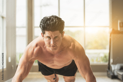Sport man work out push ups in fitness training , Man body fitness healthy