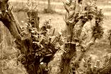 Pruned branches of Buddleja or Butterfly bush with new fresh green leaves on springtime