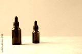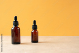 Cosmetic bottle with amber glass dropper. Natural beauty products. Mineral organic oil. Empty bottle for skin care.