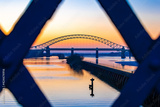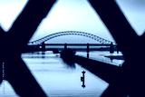 Silver Jubilee Bridge framed through an iron bridge support