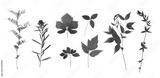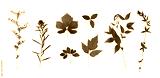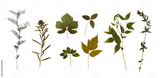 Dry pressed wild flowers, leaves and plants isolated on white background. Botanical collection