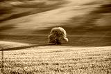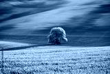 Rural landscape with agricultural fields and tree on spring hills. South Moravia region, Czech Republic