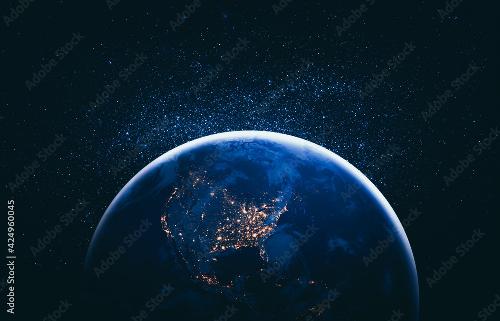 Planet earth globe view from space showing realistic earth surface and world map as in outer space point of view . Elements of this image furnished by NASA planet earth from space photos.