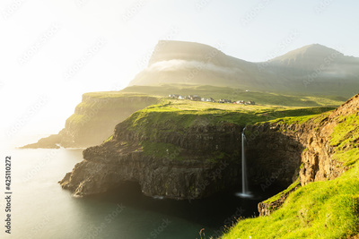Mulafossur waterfall in Gasadalur, Vagar Island of the Faroe Islands