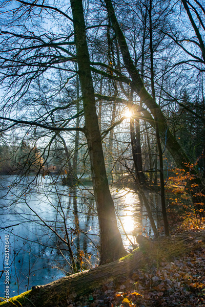 lake and trees during sunny winter day (Wandlitz, Barnim, Brandenburg, Germany)