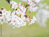 グリーンを背景にした桜の花