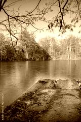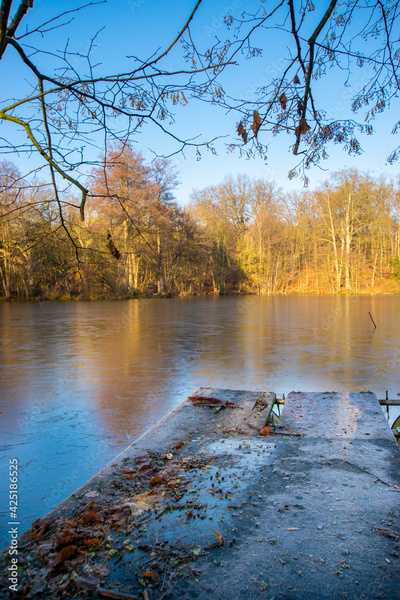 frozen lake and autumn in the forest in Wandlitz (Barnim, Brandenburg, Germany)