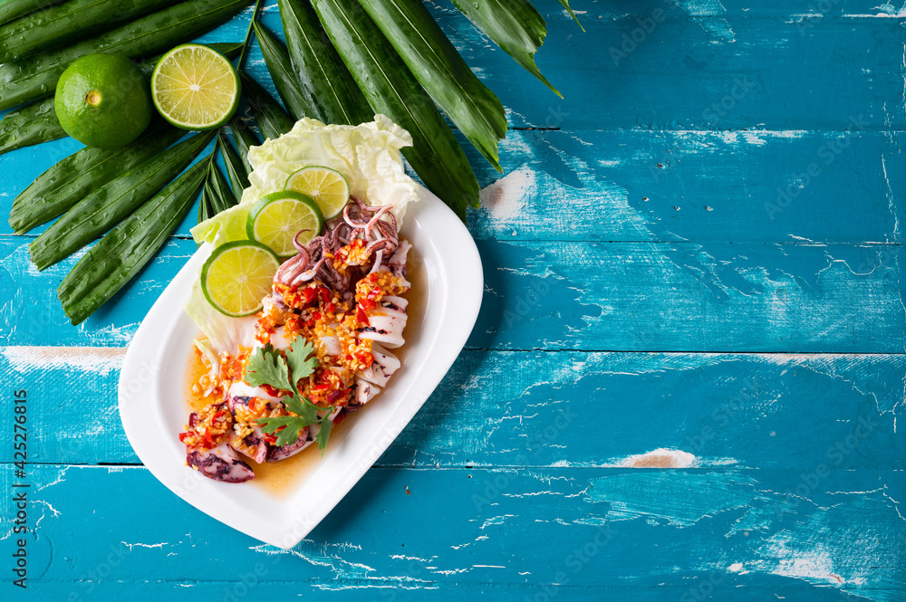 Steam Squid with Spicy Chili and Lemon Sauce - Pla Muk Nung Manow